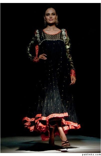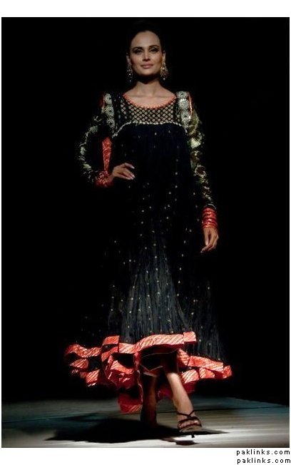 indian designers made a lot of tent like anarkalis like that when saawariya was newly out and it doesn't flatter a girl's figure so i like the paki take on things as it's top is fitted to the ribs and then flows out. so it's a nice improvement but i dunno it reminds me of when maxi dresses were cool and a lot of short people tried to rock that. i don't think every style is for everyone and i would hope anyone rocking these long flowy dresses would wear serious heels if they are shorter.
