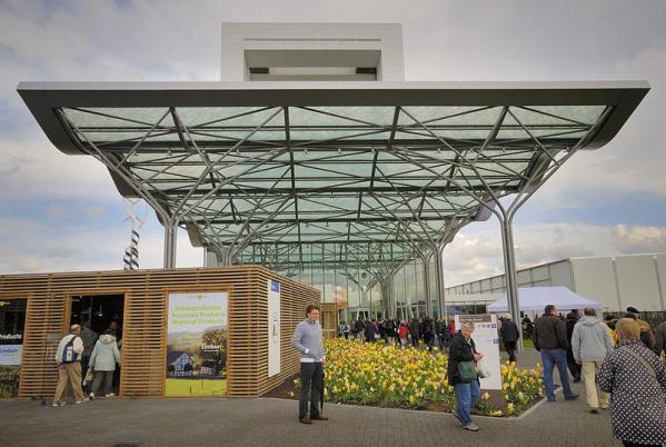 Every decade, a different Dutch town hosts a horticultural fair called Floriade. The current Floriade is in Venlo, Netherlands. Growers from various nations show off their talents at Floriade pavilions. Some of the pavilions focus on aesthetics. Others demonstrate cutting edge technology or explain environmental concerns. Landscapers created the 160 acre grounds for Floriade 2012 from farmland and woods. In keeping with a green ethos, the infrastructure built for Floriade 2012 will be put to good use as an industrial park after the fair is over.