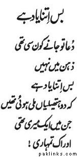 ab us kaa fan to kisii aur se manasuub huaa maiN kis kii nazm akele meiN gun'unaauNgii
