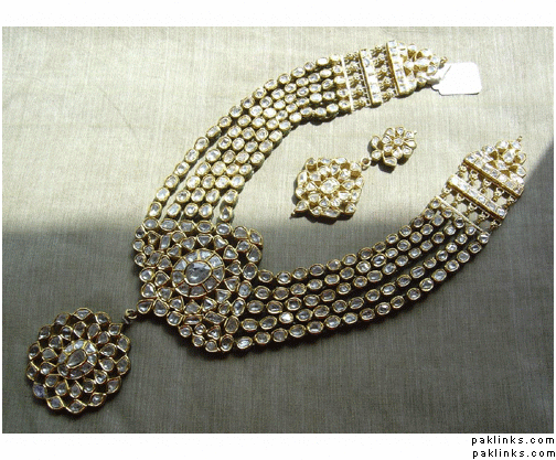 its really not like the real polki. kundan however is available in artificial very easily and it resembles the real kundan sets pretty much. there’s another thing that is new in the market which is zarcon polki sorry i dont have any pictures available but its almost like the real polki only it does not have the shine of diamonds. its available rarely but its also in gold (its way less priced than polki though and as its made in pak you know the exact amount of gold in it) i know a few shops where this is available.