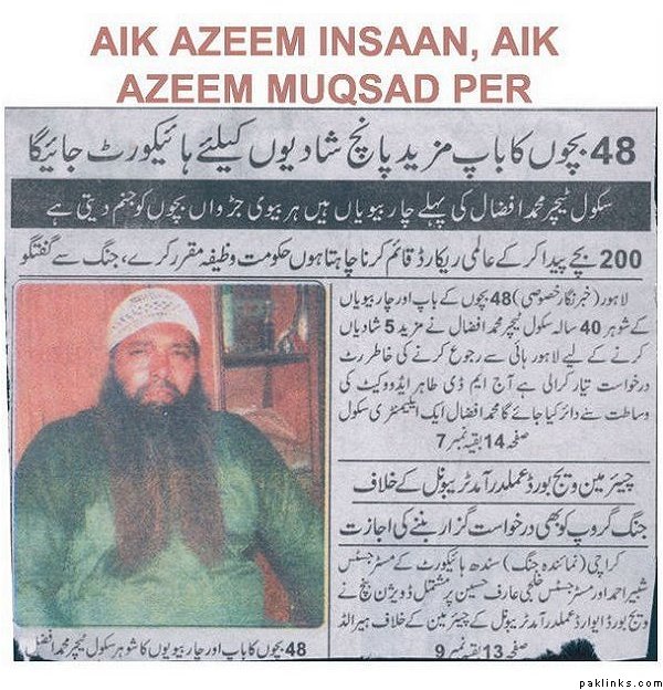 While the govts spend their energies in the oppositte direction this son of the soil, a father of 48 has taken upon his shoulders the task of taking Pakistan’s name to the books of world records by fathering 200 children…!