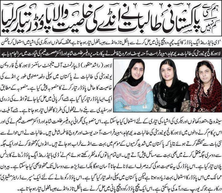 Manoor and Bushra (from Peshawar) win 4th position at the Intel ISEF ‘Energy Square for Cattle’ competition in America. They were nominated for coming up with a unique form of cattle feed.