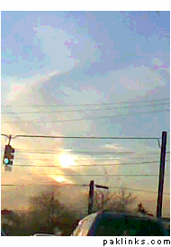 Yeah, i see a big hand in the sky in the shape of a cloud and the bright image to the right, isn't that a maple leaf?