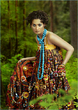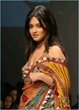 I like that orange and black sari. I think the model wearing it pulled it off quite well.The black gives it some glam; the reddish- orange catches the eye and looks quite daring, with out looking like a big construction sign. It's different so it give a nice breath of fresh are. I must say, orange is a hard color to pull off, and the model did a good job. I think the fact the fact that is reddish orange, subdued that bright orange effect neatly.