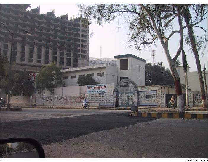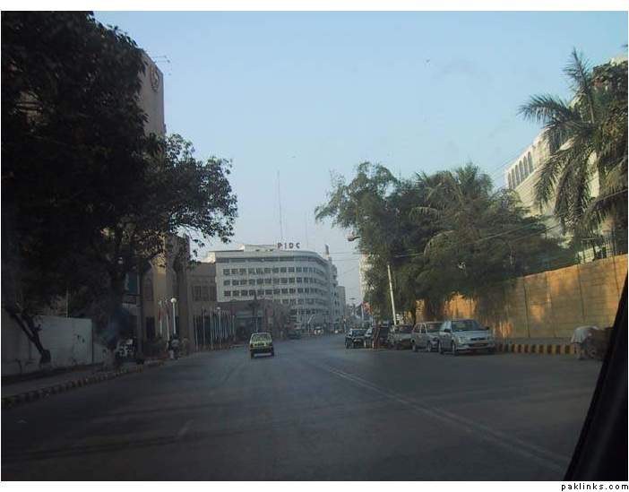 PIDC Building, on the right is Karachi Gymkhana and after (white building) is the Karachi Pearl Continental