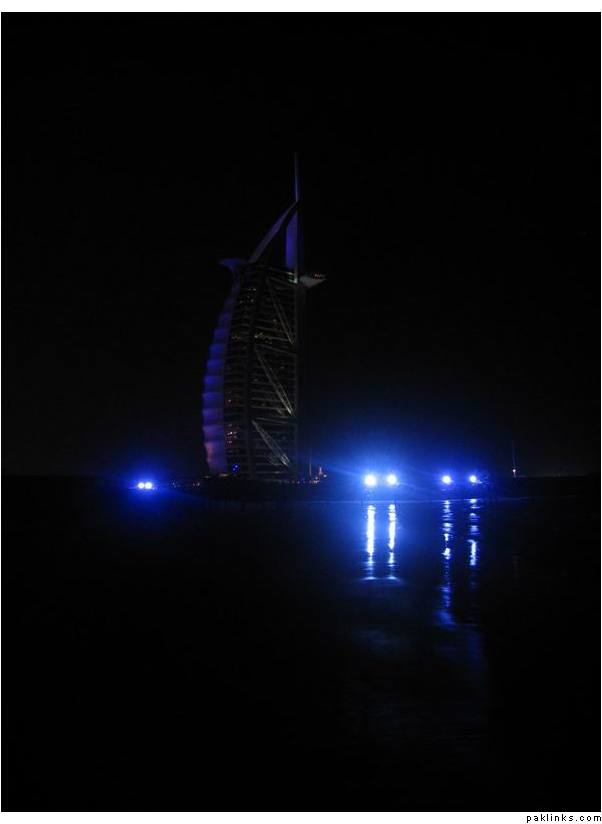 The Burj Al Arab by night (picture shot from Jumeirah Beach):