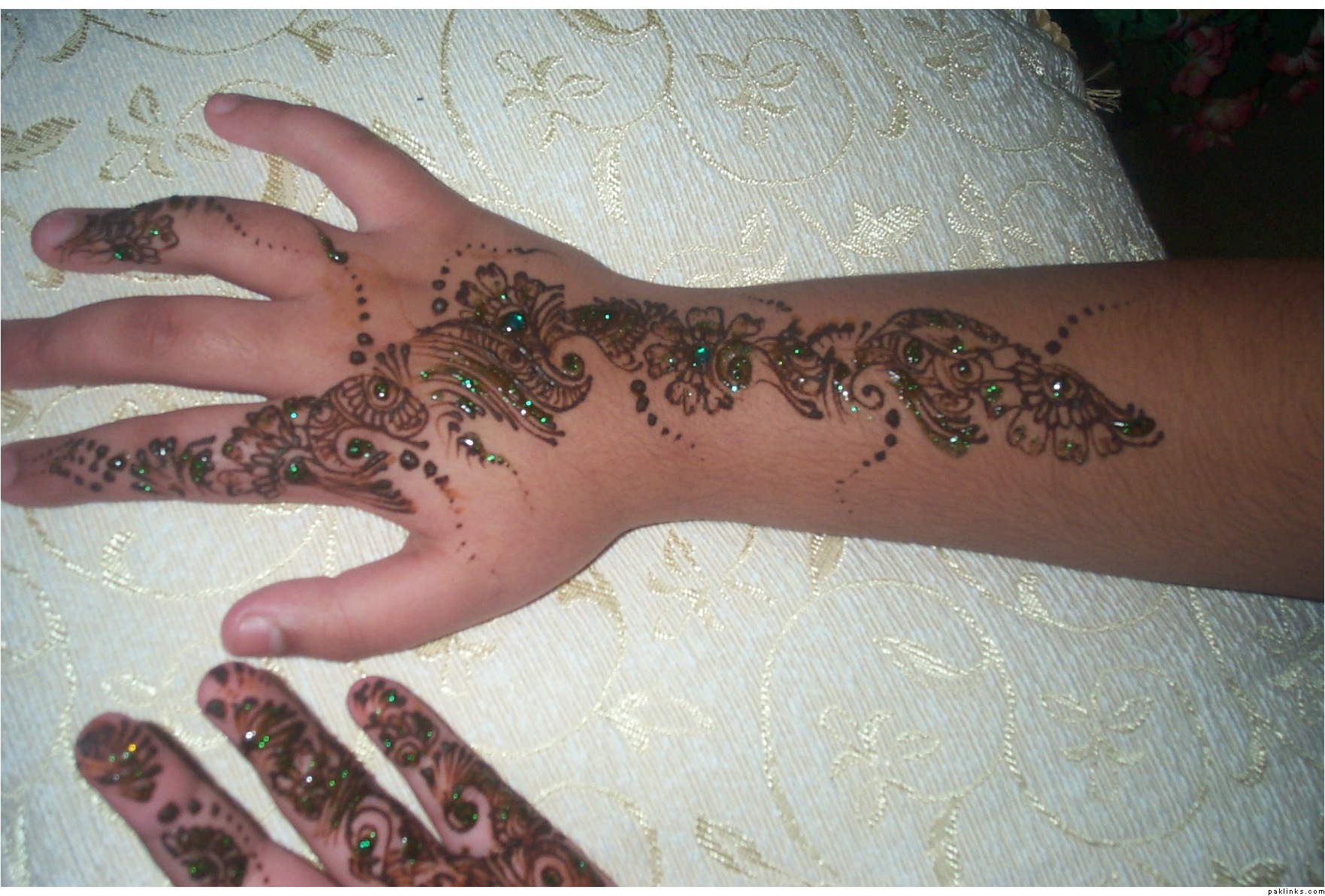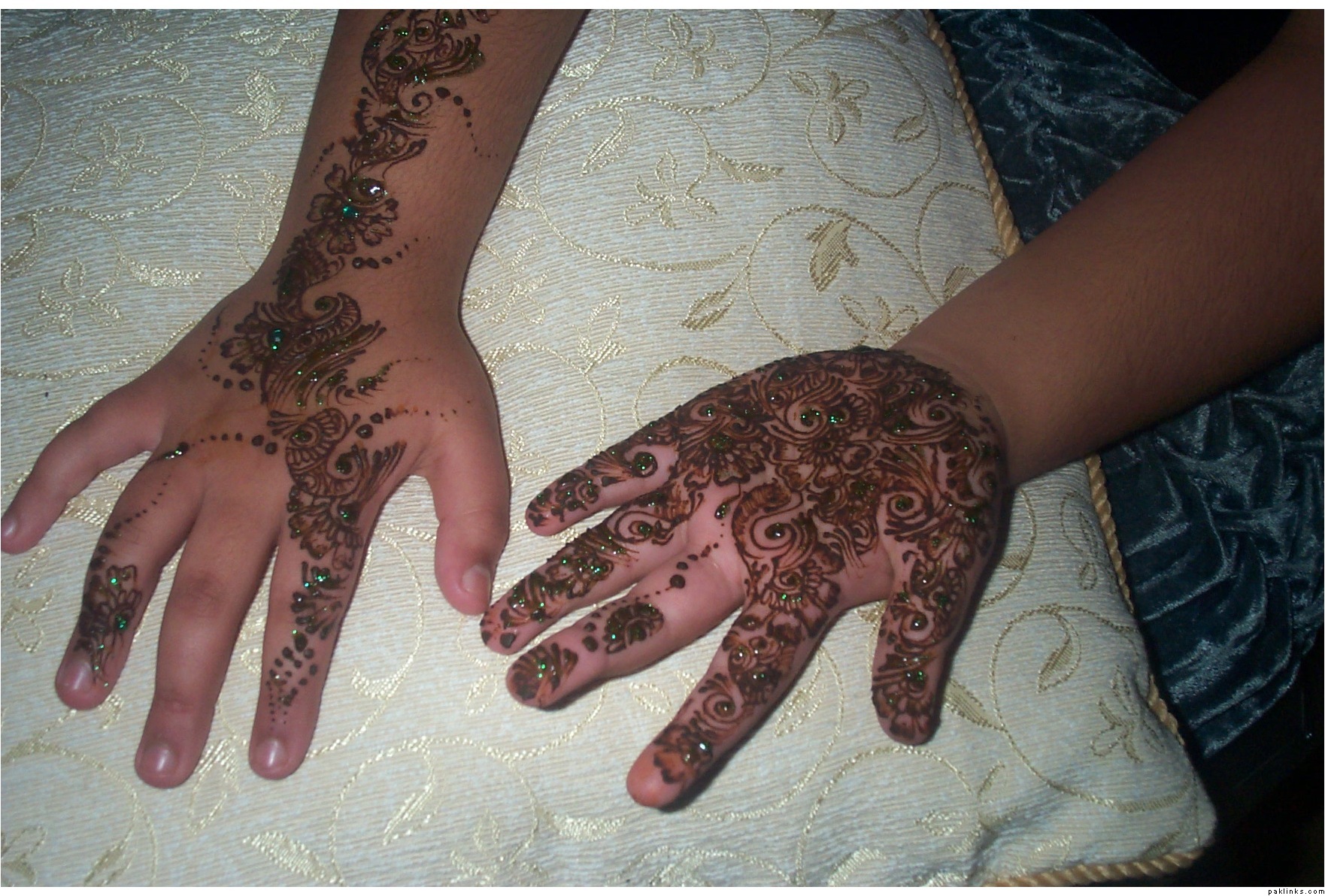 Icouldnt put nice mehndi on myself this time because i had over 10 people at my house i done this mehndi on my next door naber’s Daughter i just done a small round tikki on my hand or wateva its called usually my hands are filled like a bride mehndi…!!!**