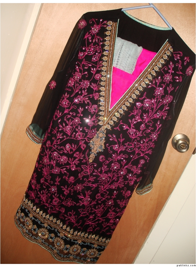 Where do I begin? After no less than 500 emails between us in 3 months, I finally decided to place an order. It’s not that I doubted her integrity or workmanship but I just couldn’t decide on an outfit! Ultimately I ended up ordering the Karma sharara. She did a great job on it. She kept me involved in every single step of the way, asking what color combinations I wanted, where to place the pipings, what colors etc... Before this order was completed I had already ordered another semi formal as a gift for someone, 3 lawn suits and had her deliver a Gul ahmed suit + flowers + cake + card to my Mother and Mother in law for Mothers day. And yet I still ordered more (still waiting on them though).