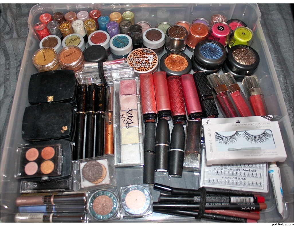So this is pretty much everything! the surrounding bags are filled with random eyeshadows, little palettes, lip products and face makeup, which i’ll be needing a whole new box for.