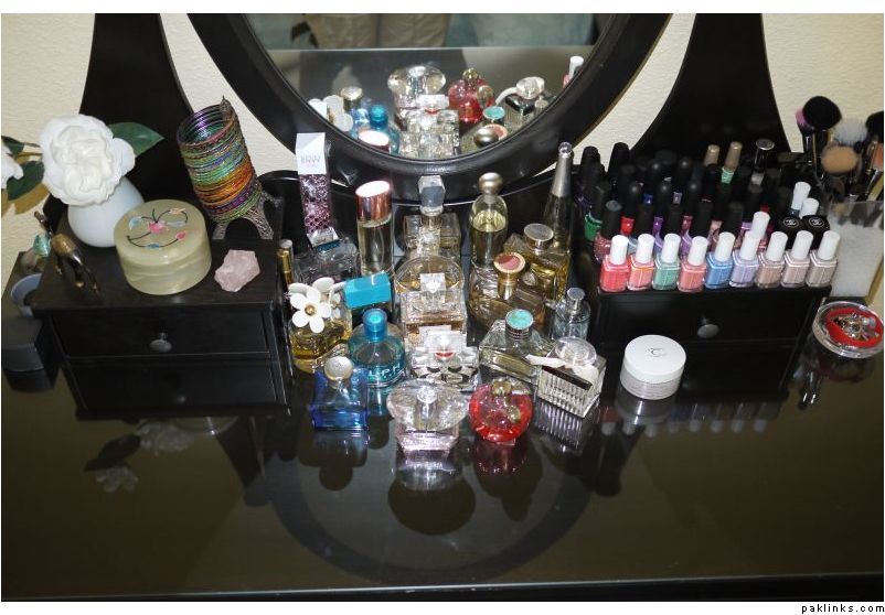 A question: how do you guys keep the areas clean?? especially while having all the perfumes and nailpolishes on the desks???