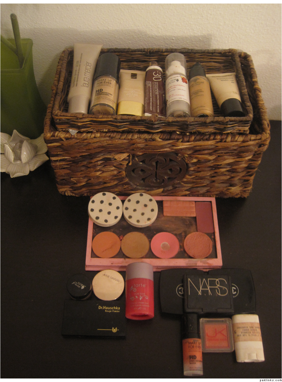 Its separated in 2 parts. One is the normal makeup and other all natural, mostly chemical free which I apply on a daily basis (I have clubbed them together..so anywhere you see Dr-Hauschka, Pure-cosmetics, Tarte, Korres is the natural line)