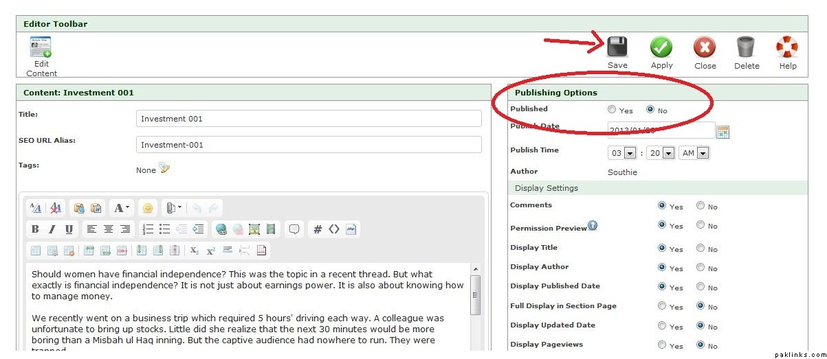 publishing options are only available to Editors.