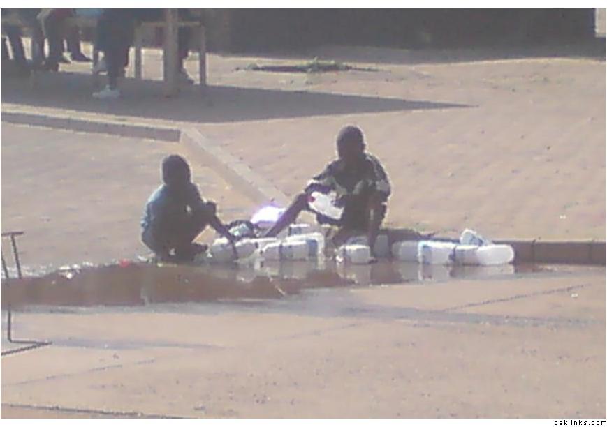 LOL! kids drinking ganda paani, drinking water thats leaking out of gutter? isnt it poverty? Some would rather die of thirst than drinking that water.....