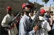 Security guards of Pakistan’s former prime minister Benzair Bhutto are on alert during here visit to her home town Larkana, Pakistan on Sunday, Oct 28, 2007. (AP Photo/B.K.Bangash)