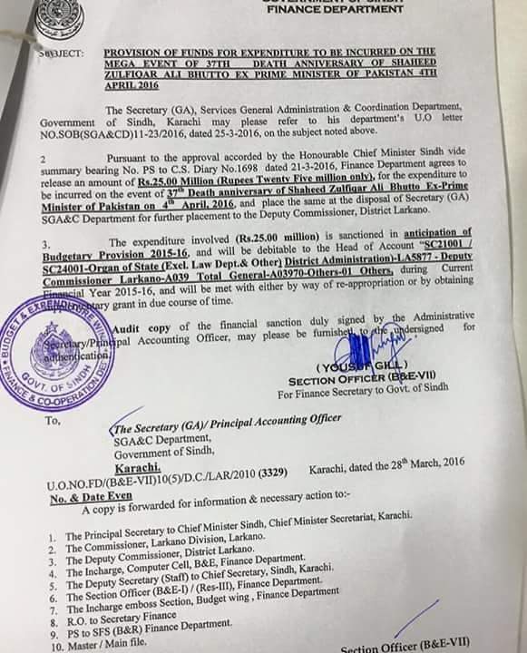 Rs.25 million approved for Bhutto’s anniversary by saieen sarkaar while people in sindh are dying in a drought ![]()