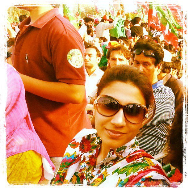11a.m. I, along with my family, left the house for Minaar-e-Pakistan. Our car had PTI flags on the windows. On the roads, I could see many other cars which were painted red and green for the day. It was indeed a refreshing sight.