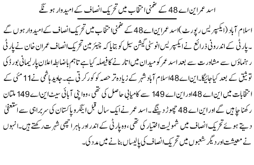 Rigging has almost become a science and the old guards understand it like no other. PTI will need to come up with a fail-safe strategy to stop rigging in all its forms and manifestations. IK will need to exert his personal charisma and Javed Hashmi will be required to knock at virtually every door to ask for votes for Asad. Sheikh Rashid can also come handy. Asad Umar himself is a charming orator and can cast a spell on a relatively educated voter class of NA-48.
