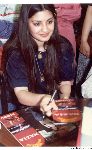 When Zia came into power, almost all music videos were banned to air on PTV. The two Hassan siblings were banned from dancing together on stage and the videos would feature Nazia waist-up to hide her dancing feet.