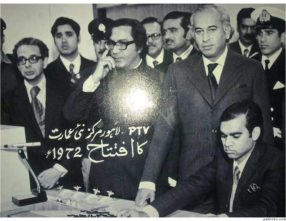 them Chairman & MD PTV & Radio Pakistan; (also seen on left is Yusuf Bach, Information Advisor to PM ZAB, back centre..Mustafa Khar, the then Governor Punjab)