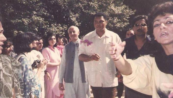 Legendary boxer, Muhammad Ali, arrives at a college in Lahore during his 1988 visit to Pakistan