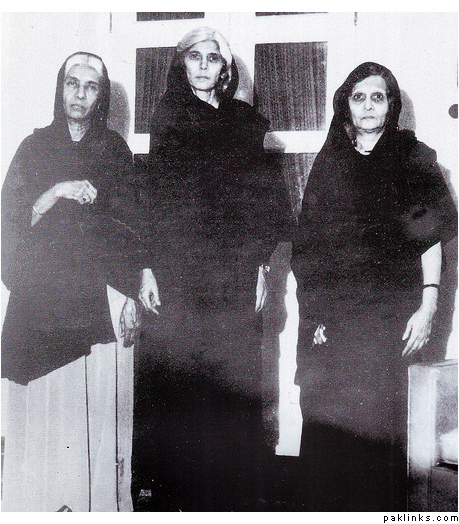 Fatima Jinnah in the middle with her other two sistersMaryam and Shireen.