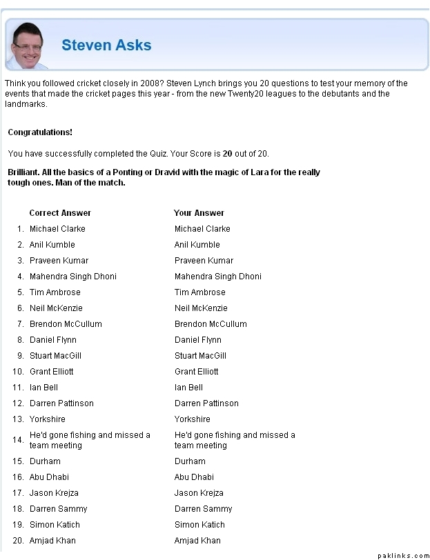 Source: CricInfo - Steven Asks