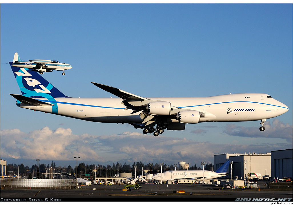 Here is Boeing’s New 747-8 Freighter on its Maiden Flight from Everett, Washington, the Factory can be seen in the background.