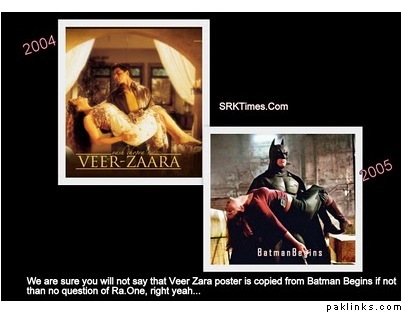 and the comparison between Veer-Zara and Batman Begins is using a screen-shot from BB, not the movie's original poster...while the ones korn compared are Ra one and BB's original posters