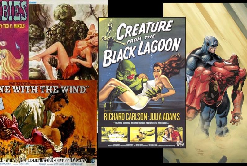 These are posters from old movies, horror, romance and comic books. THEY ALL HAVE THE SAME POSES OR SIMILAR ONES.