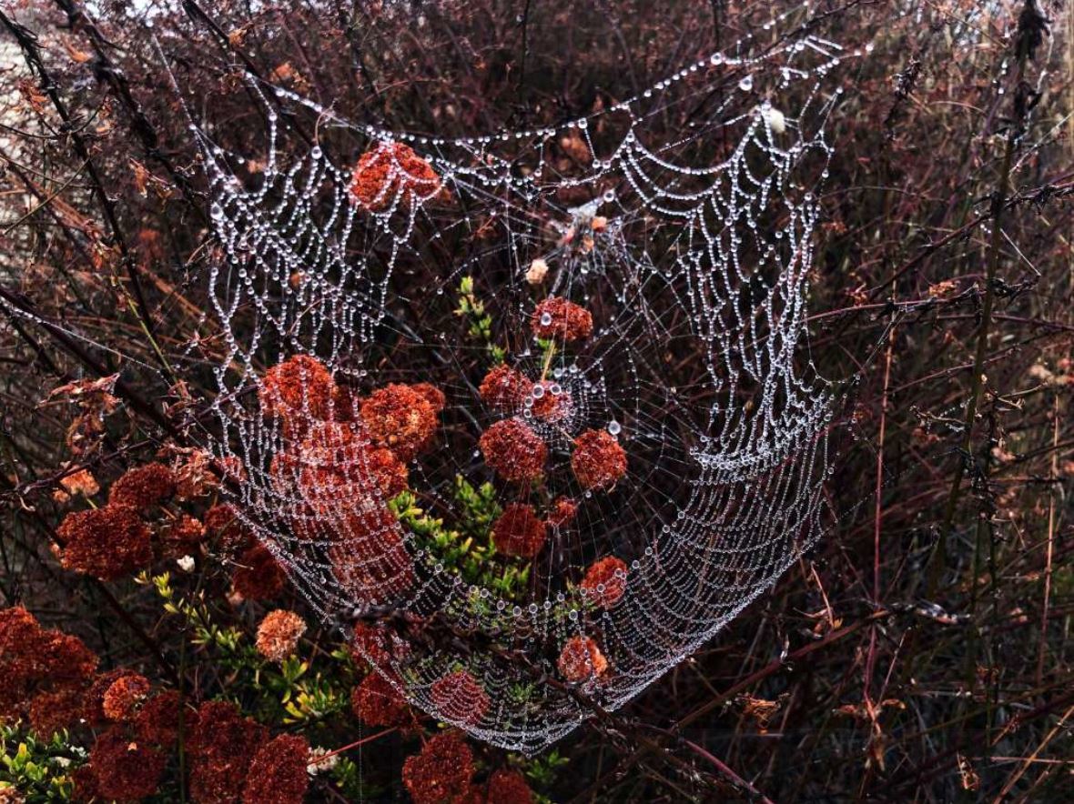 The picture is of a Spiderweb covered with Rain Drops so the Spider singing this song