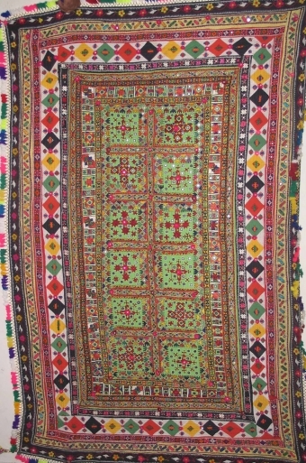 Tie dye and ajrak prints are also used extensively. Even now, rural women of Sindh can be seen sitting together on the floor with the ralli spread in front chatting and working together.Traditionally, the more the bride had rallis in her dowry, the richer she was thought to be. (Its still part of the dowry alongwith Ajrak)