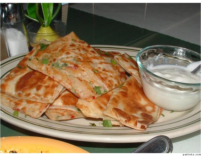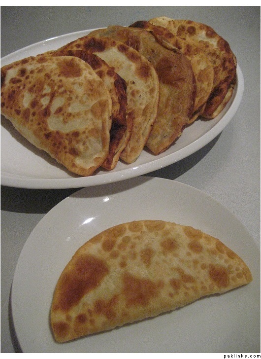 Bolani – Savoury turnovers filled with potato, scallions, and coriander, spinach and kishmish paneer (a type of soft cheese) or a variety of other fillings.