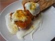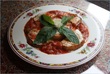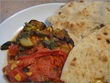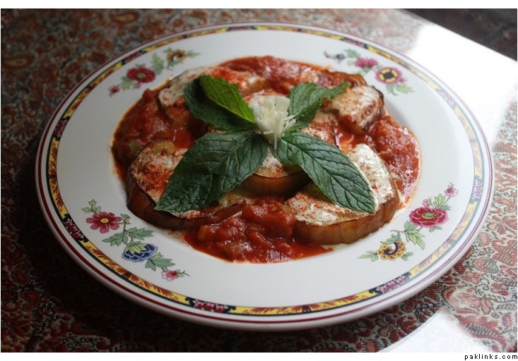 Borani banjan – Grilled aubergine in a spiced tomato sauce topped with yoghurt and mint.