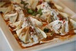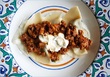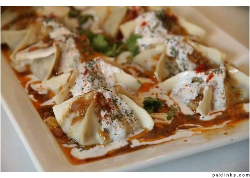 Mantoo – Steamed dumplings filled lamb or ground beef served with a meat sauce and topped with yoghurt and coriander.