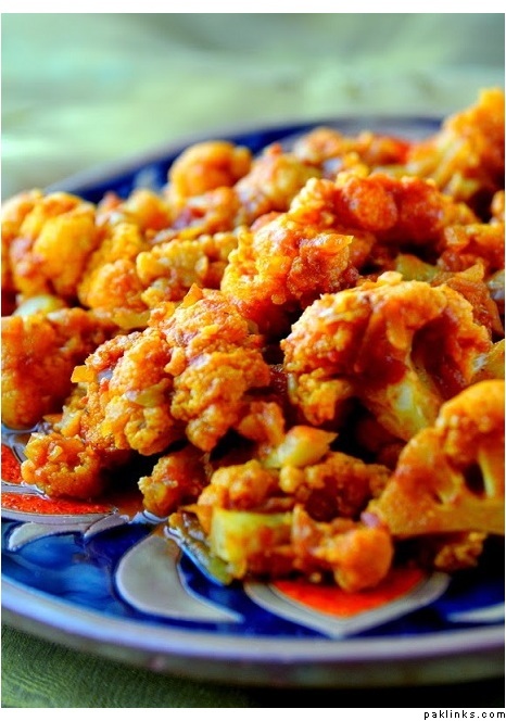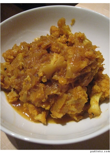 Qorma-e-gulpea – Braised cauliflower cooked in a sauce of tomato, coriander, ginger, and garlic.