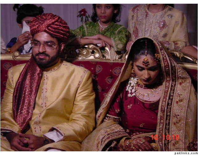 the general rule is to not wear hte same color. Otherwise, keep the hair simple (u can still do an updo if you want), just please please please do not wear hte duputa on ur head! if you do hijab, u can easily find a matching simple scarf and it will be nice. I hate when girls use the exucse of “hijab/pardah” to dress like a dulhan! ![]()