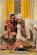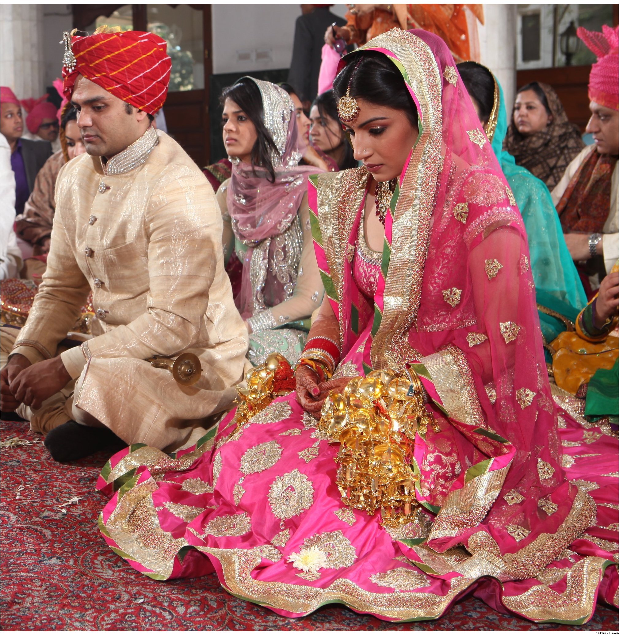 The wedding functions included a welcome party at St Martins lane hosted by Gaurika’s brother and sister-in-law Udit and Shermeen, a mehendi lunch at No 4 Hamilton Place, an evening celebration at Duke of Kendal pub hosted by Amar Mehta, a close friend of the couple, the wedding cocktail at 1 Mayfair and the Reception at The Wallace Collection. Gaurika opted for a vintage romance look at most of the functions and wore flowy and elegant creations- a bright yellow outfit by Pam Mehta for the Mehendi, a Sabyasachi lehenga for the wedding cocktail and a Ritu Kumar ensemble for the reception. For all the functions she wore antique-style jewellery designed and produced by her mother Keshi Gambhir from Aargs Jewellery.