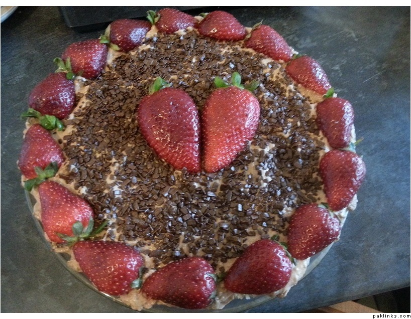 It looks pretty but cake + some kind of custard mix + tinned fruit is a pretty standard desi dessert.