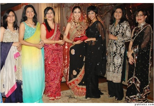 Red and black on the bride? Doesn't sound very weddingy.... although I've been to a wedding, where it's been red for the women and black suits/sherwanis for the men..