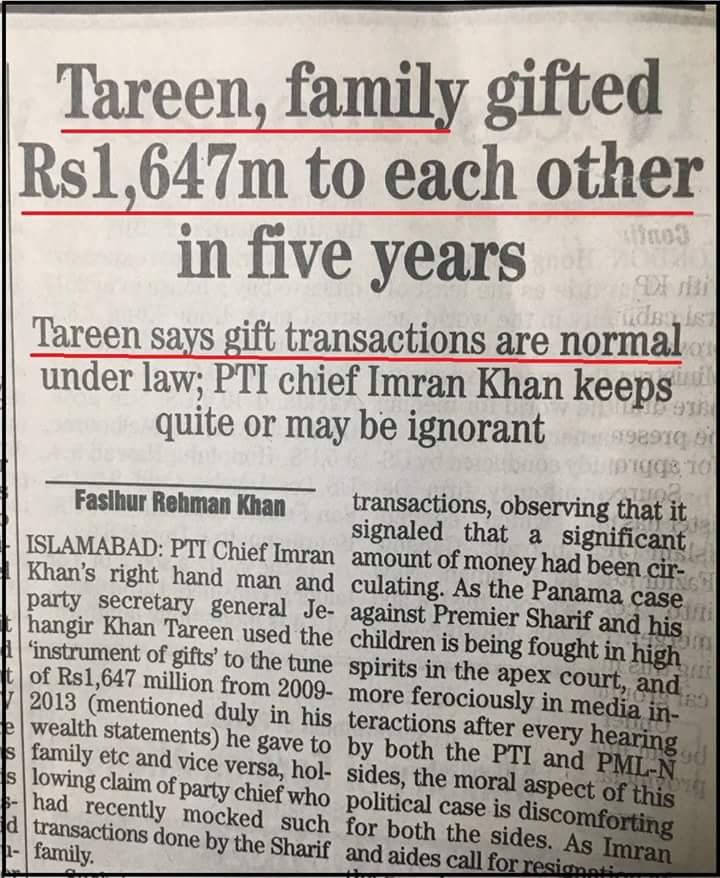 Jehangir Tareen should be thoroughly investigated. He has plead guilty of bank loan write off in past. Either he returns it or his properties be confiscated according to the law.