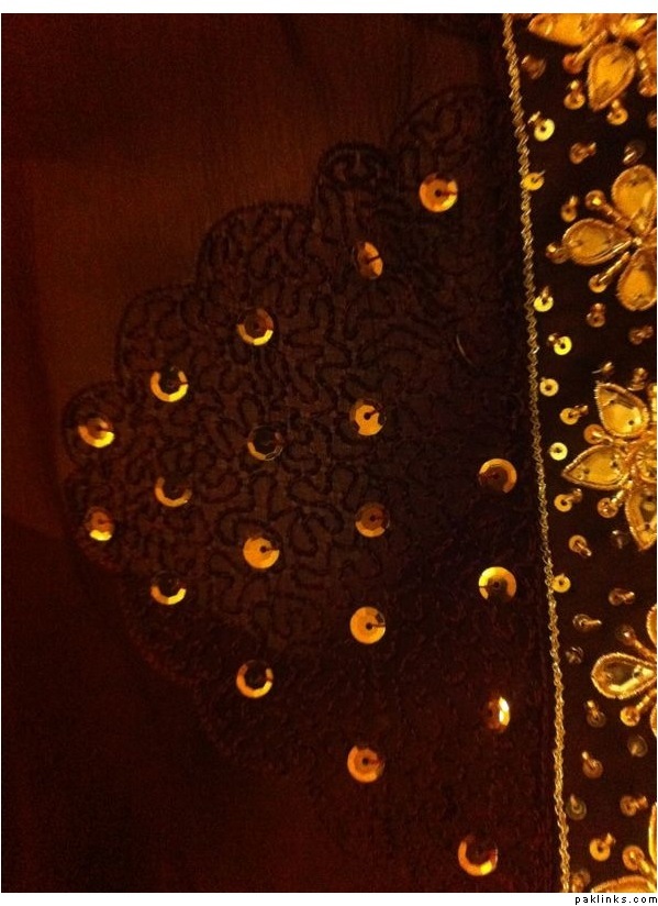 Kaam details - Its sequin/sitara on the left on thread lines. And the right side has dabka outlines probably and plastic stones (not sure what they are actually called since i dont use them) and sequin with beads.