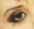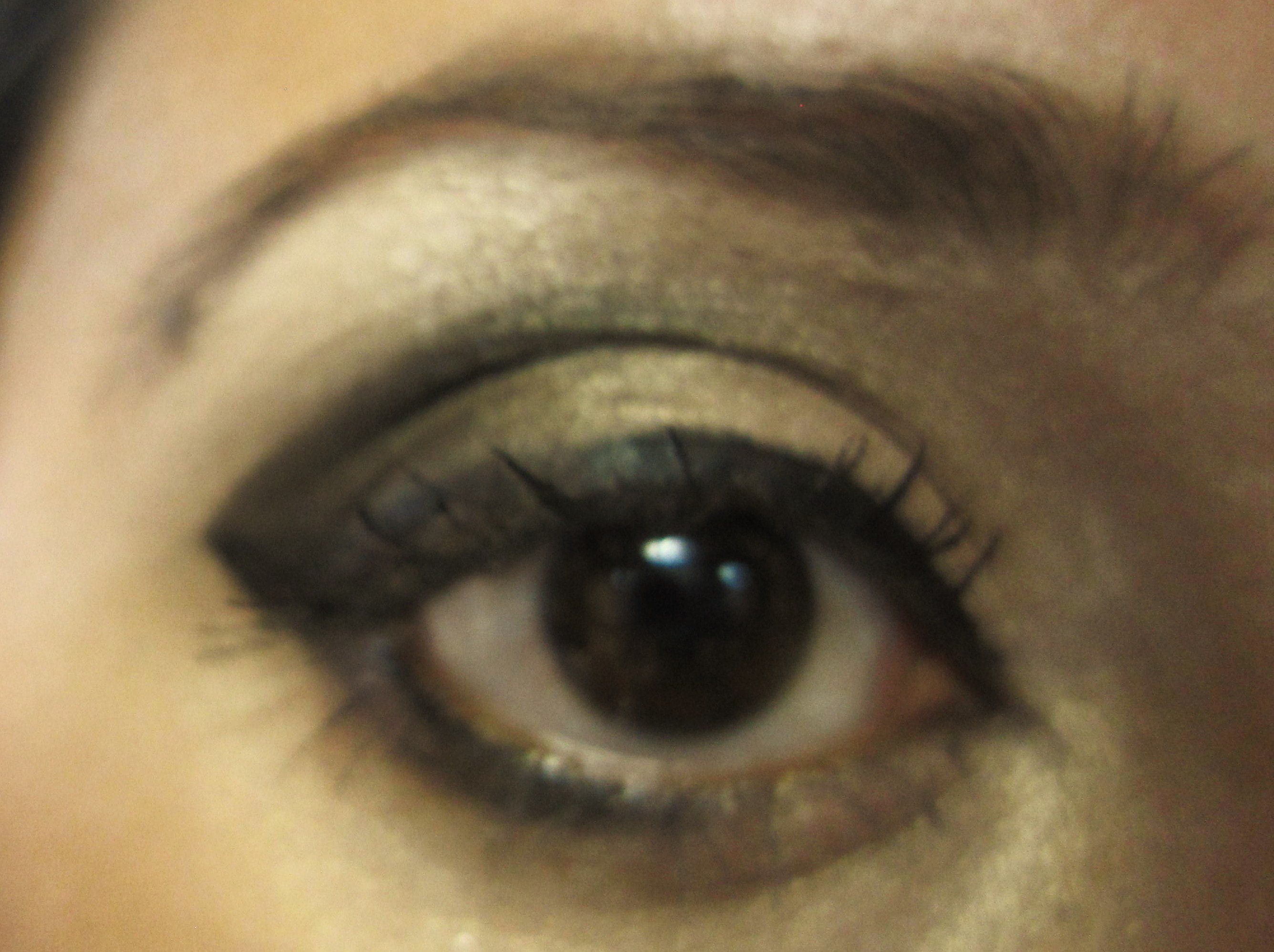 Then there is thick liner, doesn’t seem winged because the eyeshadow is already doing the winging. And the eyeliner on the bottom is mainly kept on the outer eye so it keeps the "cat eye’ shape and of course some wispy lashes which flare more out towards the outer-corner. And the golden shadow (Goldmine) is also lightly placed in the inner corner as a highlight. The brow-bone highlight seems to be a matte shade, maybe Vanilla.