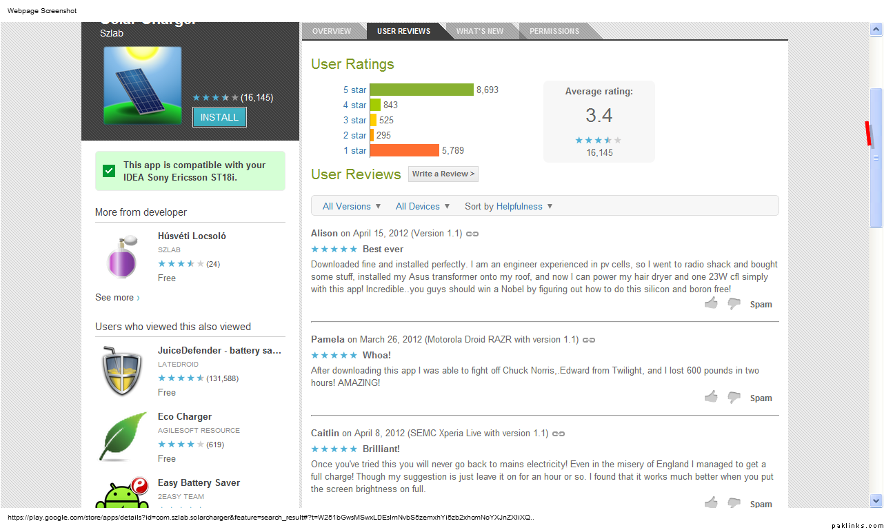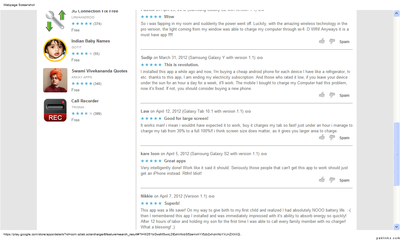 These are reviews for solar charging app for android…