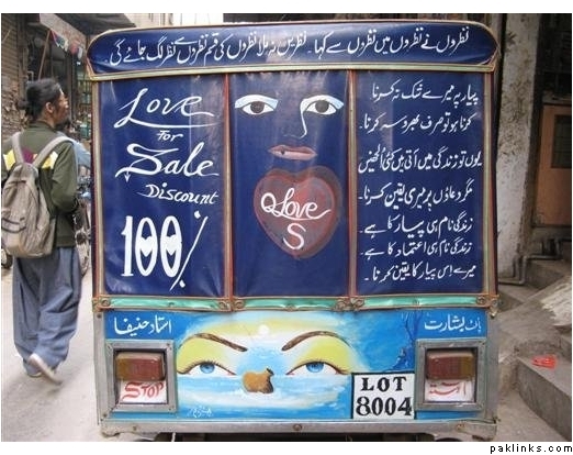 ^ zobia: in 2004 when i was visiting karachi, I saw this at the back of a rickshaw: