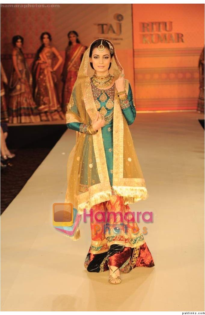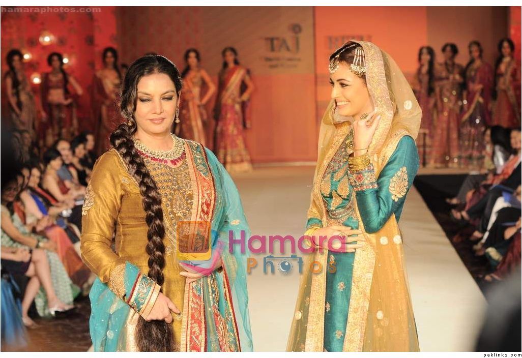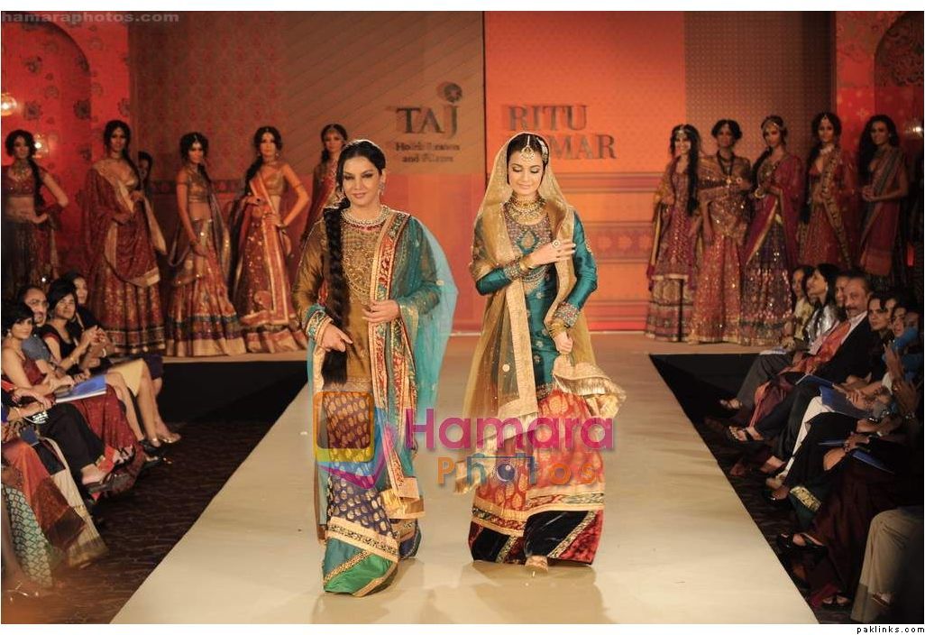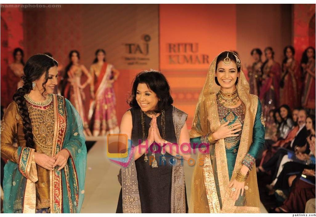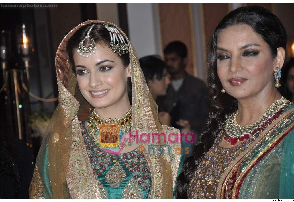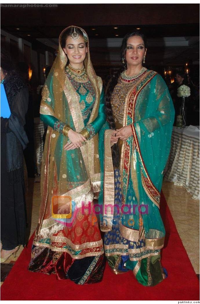 The show ended with beauties Shabana Azmi and Dia Mirza dresed in rich Hyderabadi royal “jodas” walking the ramp and greeting the guests with a gracious adaab.