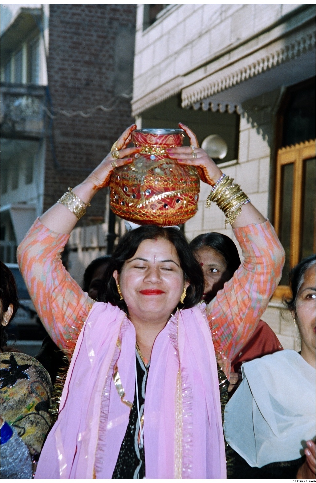 Never heard of these but it sounds a bit similar to hindu/sikh weddings where they carry matkas on their head. Don't know the significance though but saw a few pics on some photographer's site. Do you have any pics to share?