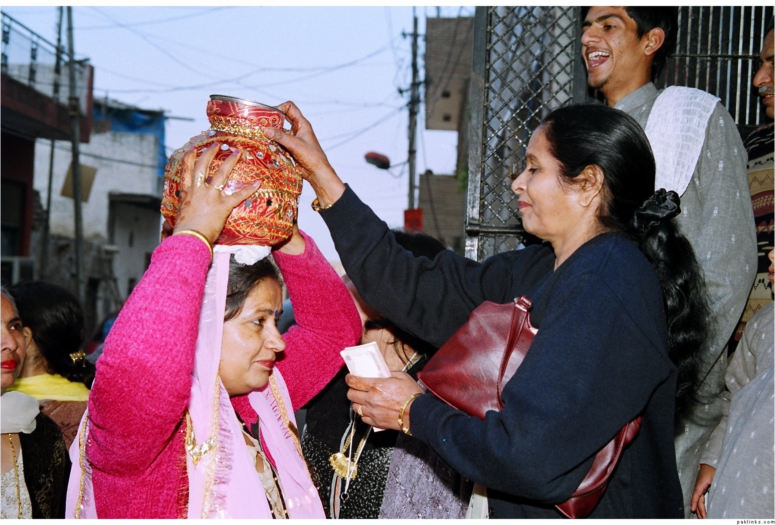 I know one but I was wondering what the point of it is? When the bride is brought back to the house after the Rukhsati, the MIL and/or SILs take a matkafilled with water and circulate it around the bride's head and drink's from it. Sometimes the bride and groom actually play pretend to stop them. What is that about?