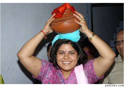 Another rasm that I enjoy is the gharoli, where the groom's family and friends, before the baraat, go and fill a matka from a well or a neighbour's house so that the groom can "bathe" with it. My aunt currently wants to do this for my cousin even though it'll be really impractical as we live in England.
