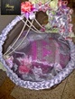 The basket is decorated with Silver Silk Fabric with choti on border and basket is lined with silver silk fabric, covered with silver net..