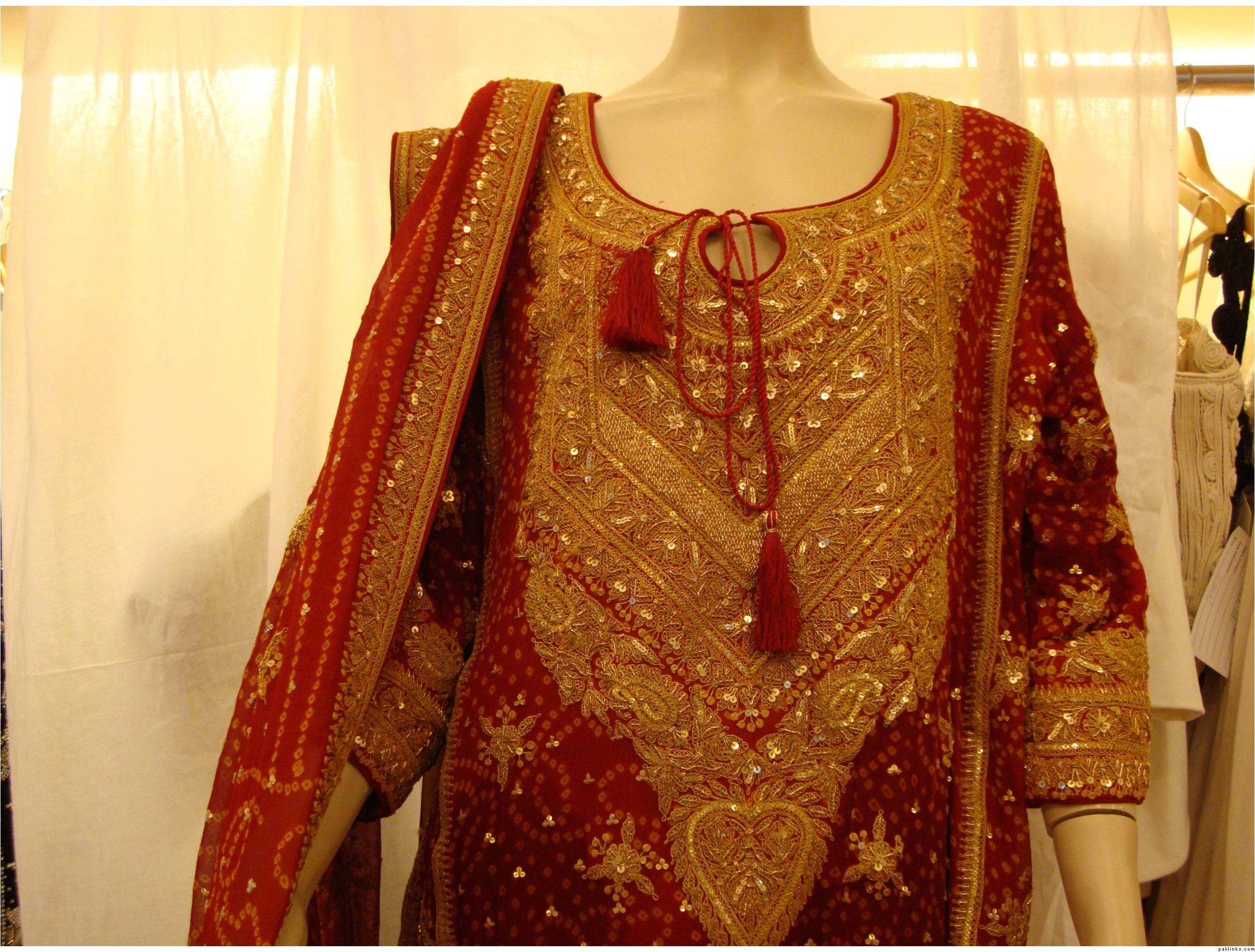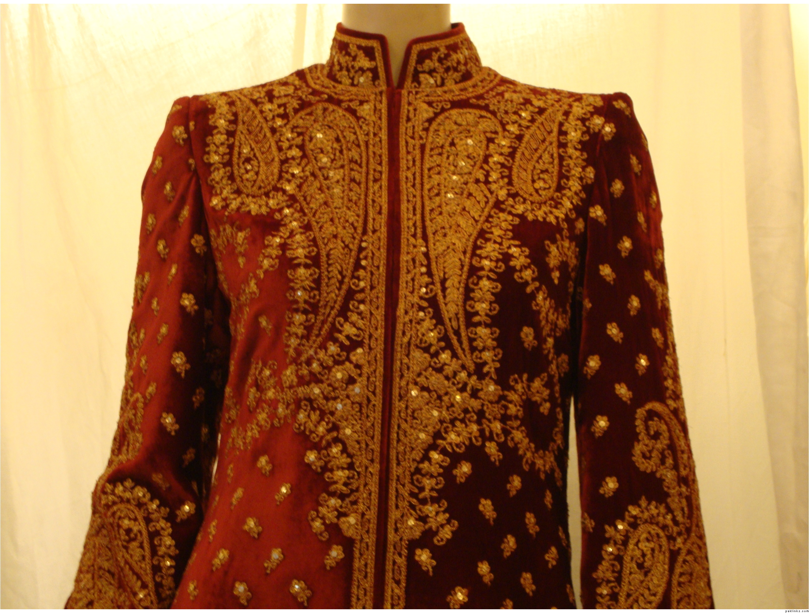 I dont see it as a bridal jora nor a valima jora. Rather, It would be interesting at a big dholak/mehndi. Personally, I would like to see the paisley motifs lower than where they are right now. It reminds me of something and I cant seem to remember wht!!